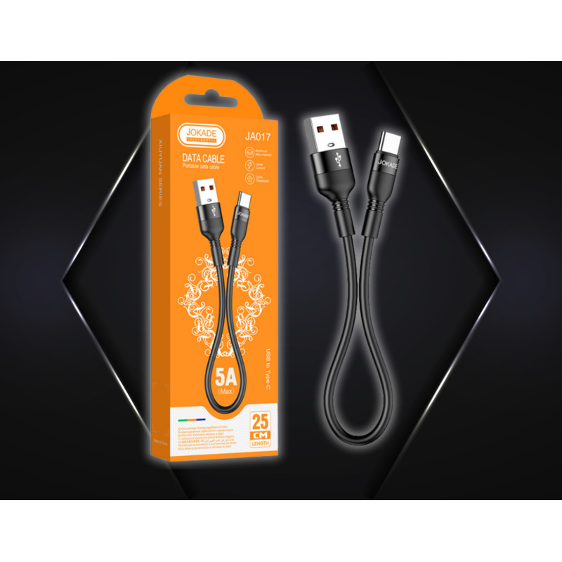 JOKADE JA017 TYP C Kabel do ładowania i transmisji danych firmy KAKU. Przeznaczony dla urządzeń ze złączem lightning. Maksymalne natężenie prądu elektrycznego wynosi3.2A. Dzięki nowoczesnej technologii, produkt oferuje szybkie ładowanie i przesyłanie danych. Główne cechy: - Kompatybilny z urządzeniami z interfejsemTYP C - Rozszerzona ochrona złącza poprzez zastosowanie dłuższych zakończeń złączy z materiału typu TPE - Elastyczny chip inteligentnego ładowania, chroni przed przeładowaniem i przepięciami - Stały i szybki transfer danych i szybkie ładowanie o natężeniu 3.2A - Złącza ze stopu metalu, odporne na korozję, trwałe, odporne na zużycie - Wykończenie przewodu z elastycznego materiału - Długość kabla: 25 Cm